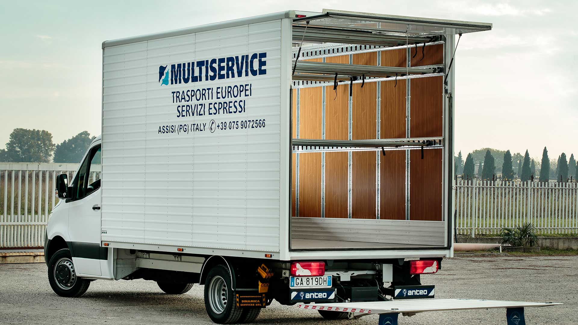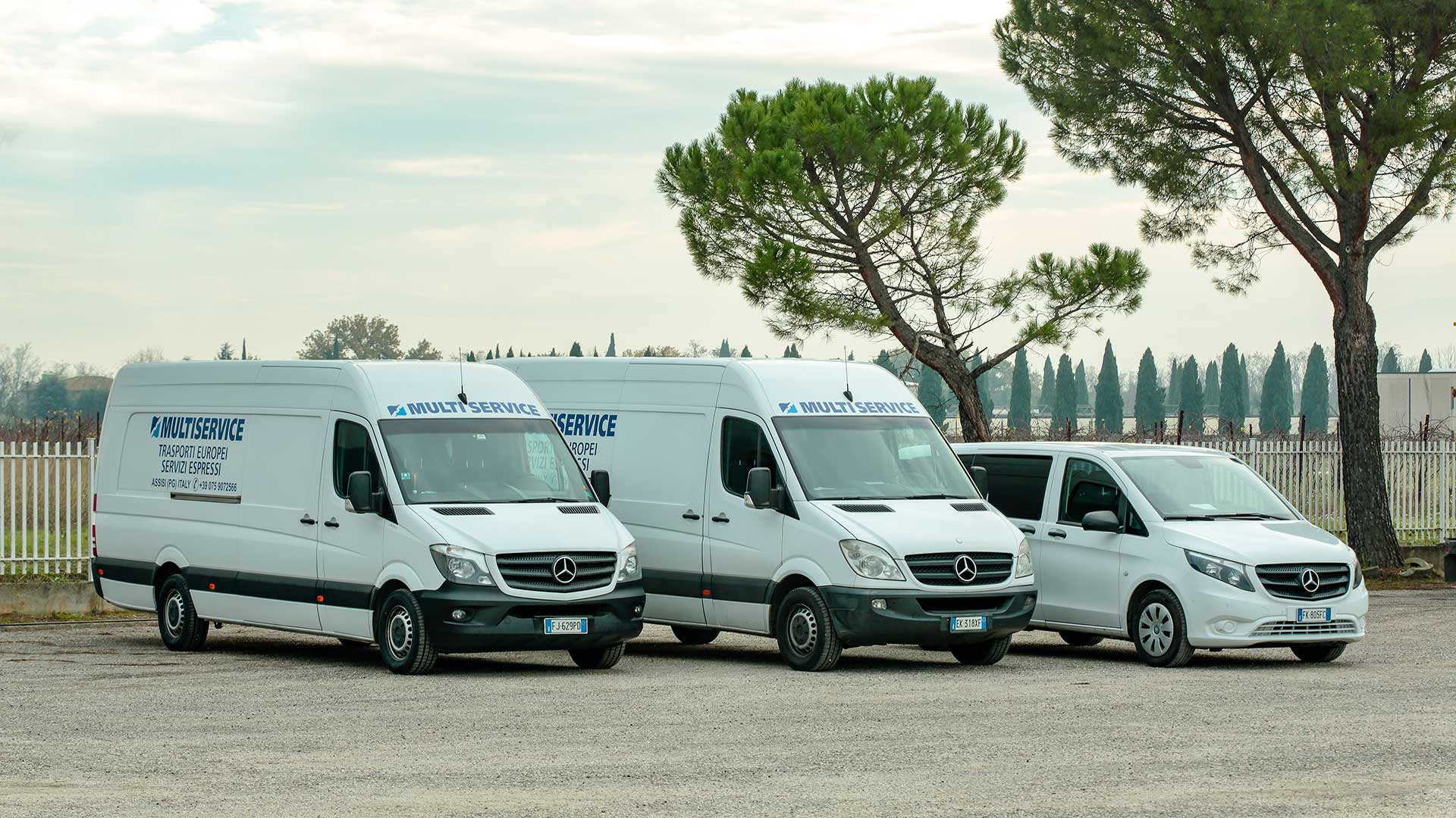 Per i servizi moda, Multiservice dispone di mezzi qualificati, dalla vettura per campionari ai furgoni piccoli-medi e maxi volume, anche con sponda idraulica, tutti attrezzati per trasporto di capi appesi e dotati di antifurto satellitare con controllo H24 della centrale operativa.
